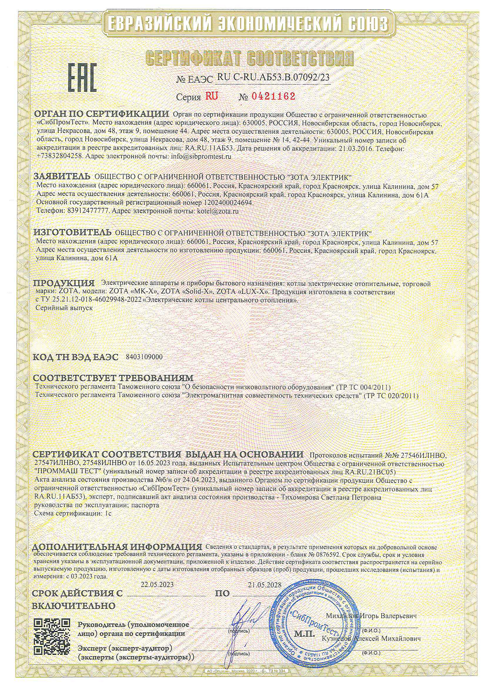 - 7 уровней защиты: независимый автоматический расцепитель, датчик давления, датчик температуры теплоносителя, датчик перегрева, автомат защиты сети, датчик рабочей температуры твердотельных реле, датчик предельной температуры твердотельных реле.